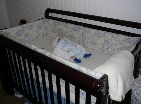 This is a picture of Amy before she left the hospital. She's trying to be 'descreet' while nursing the baby with guests present.